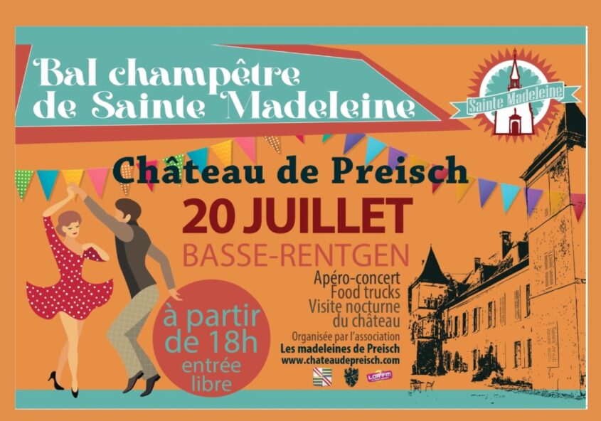 Bal champêtre au château de Preisch le 20 juillet L’association des Madeleines de Preisch reprend du service ! Pour recommencer en douceur, un bal champêtre vous attend le samedi soir 20 juillet,…