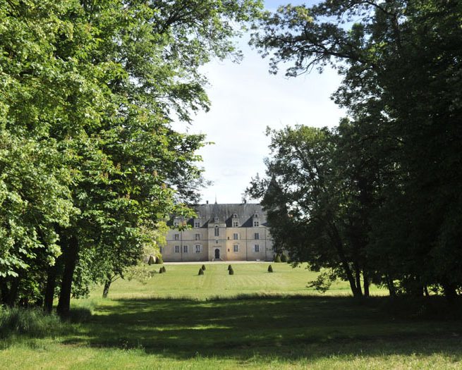 Le petit jardin régulier et fleuri qui avait été tracé au XIXème siècle dans la cour d’honneur a été simplifié ; il ne comporte plus que quatre pelouses rectangulaires.