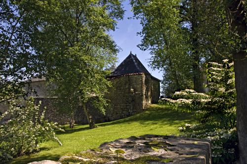 La cour des communs et celle du château forment une plateforme dégagée qui ménage un recul propice à la contemplation des façades. A l’est et à l’ouest, la disparition d’une partie du château et des écuries a ouvert deux brèches sur le paysage qui permettent d’appréhender, depuis l’intérieur, la situation dominante de l’ensemble castral.