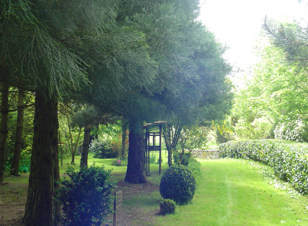 Dans l’axe et faisant face au prieuré, s’encadre un imposant hêtre pourpre qui marque le début du parc paysager.
