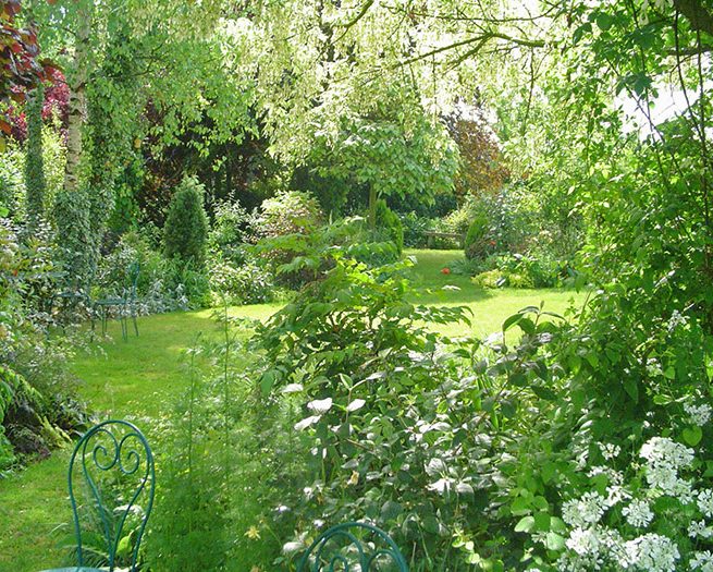 Venez vous promener au rythme rafraîchissant du bruissement de l’eau, découvrir les différents massifs d’arbres, arbustes d’ornement, de rosiers, de vivaces ainsi que des objets chinés qui viennent s’intégrer au décor en toute simplicité.