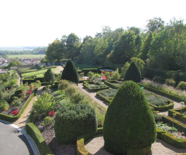 Lové au creux d’un vallon parcouru par le murmure de l’eau, ce jardin est un jardin champêtre et romantique. Il s’articule autour d’une belle ossature d’origine, sur une superficie d’un hectare, mettant à profit les différents niveaux, créant ainsi de jolis points de vue.